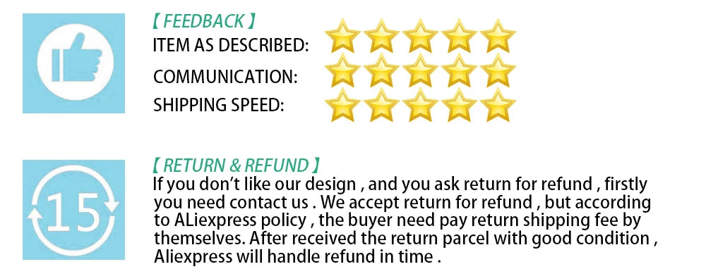We highly appreciate that if you could leave us 5 star comments if you are satisfied with our products. If there is any unsatisfaction, please contact us before open dispute and leave negative comments, we always have a solution better than this.