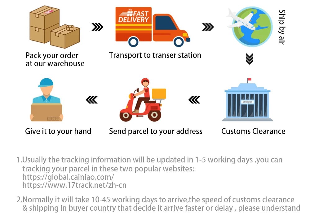 1.All orders will be shipped within 1-3 working day after payment.and tracking information will update in 1-7 working days